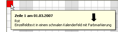Einzelfeldtexte in Kalenderfeldern, die auch eine Farbmarkierung