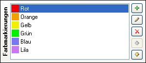 Mit diesen Buttons können Sie die Farbmarkierungen in der Liste nach Ihren persönlichen