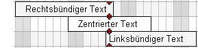 Texte über mehrere Felder: Mehrfeldtexte lassen sich linksbündig, zentriert oder